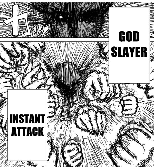 :v). Garou hanya meluncurkan pukulannya kepada Saitama, tanpa pernah